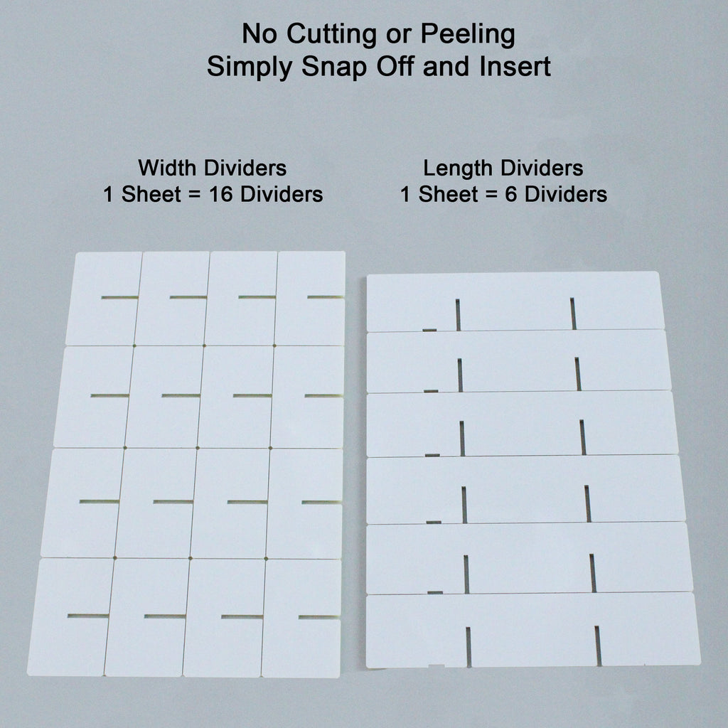 - Easy To Label - The dividers are coated with a smooth white finish that makes it easy to install stick on labels or write directly on them with a marker. Both can be easily removed or changed.