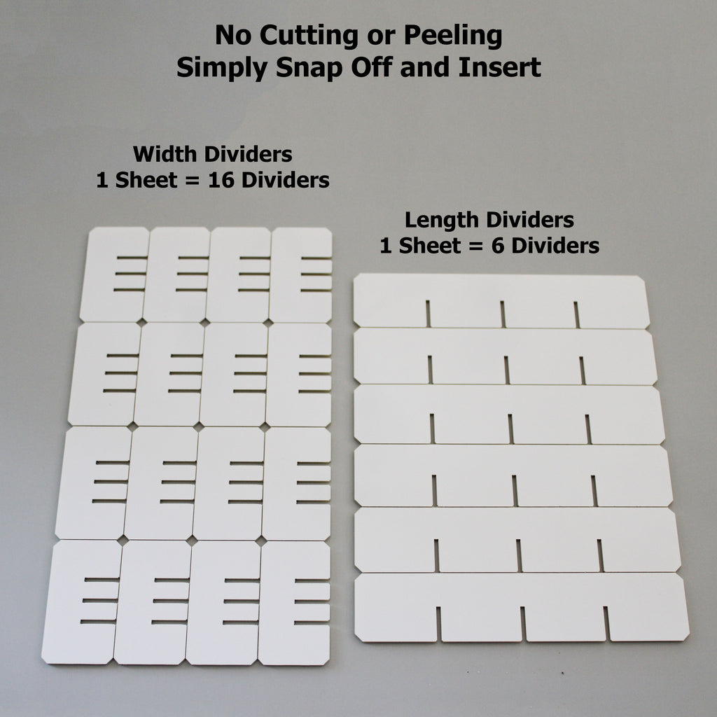 • Easy To Label - The dividers are coated with a smooth white finish that makes it easy to install stick on labels or write directly on them with a marker. Both can be easily removed or changed.